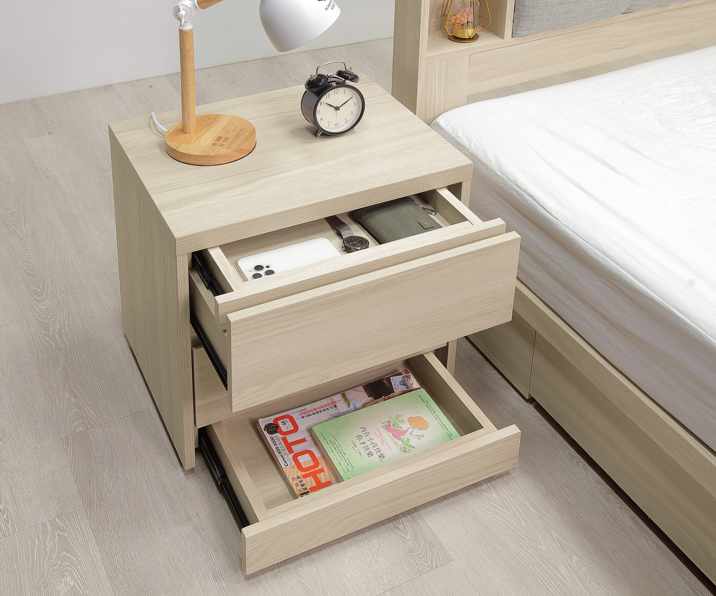 床邊櫃, 櫥櫃, 臥室☆DE德一家具☆克勞黛雙暗抽床頭櫃 HY26-A51-07