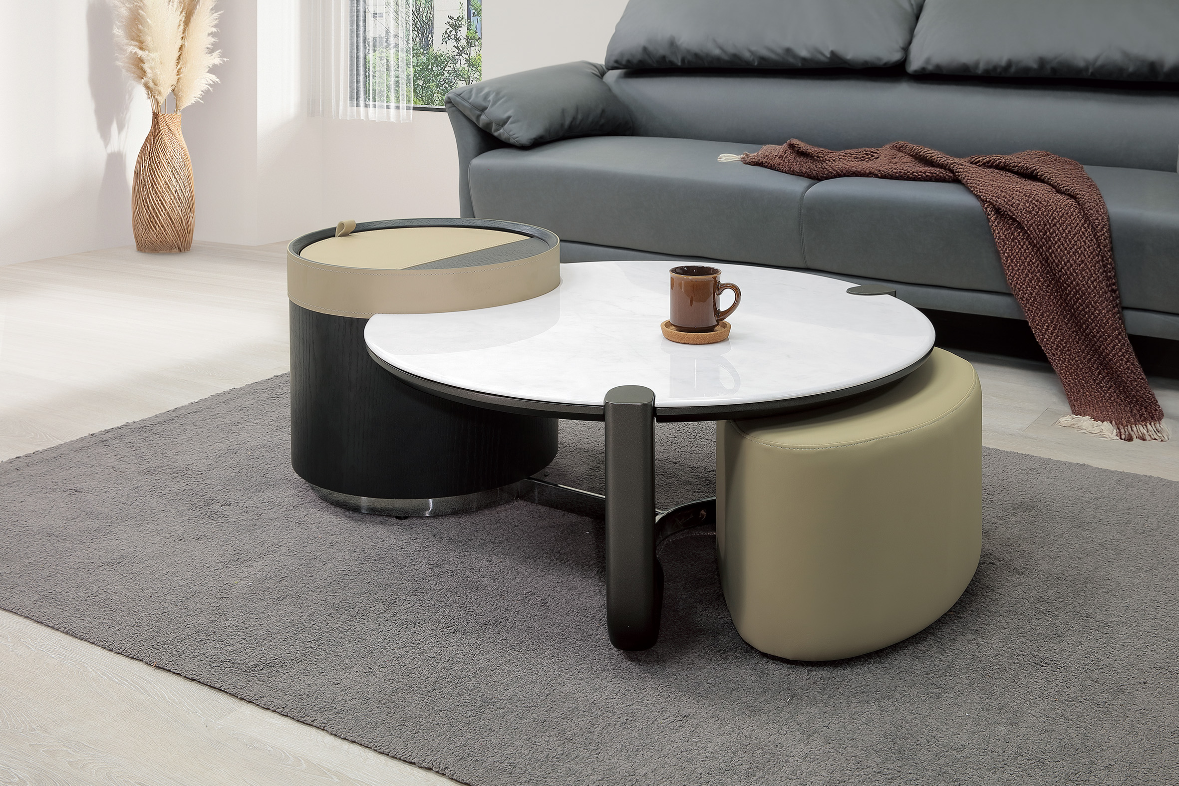 ◆桌面採天然石基底經人工微晶石紋加工處理