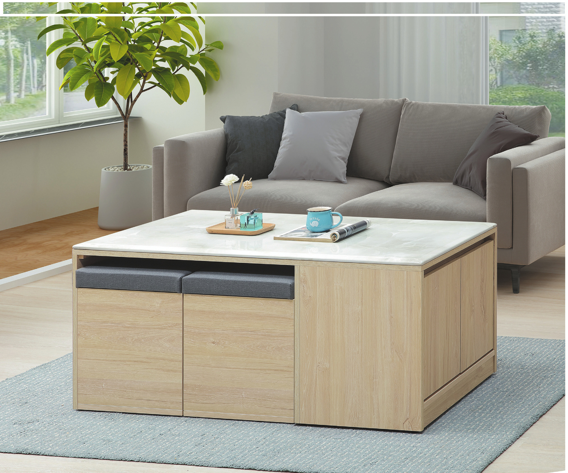 ☆DE德一家具☆唯芯石面二抽茶几 CY26-453-69342 數量