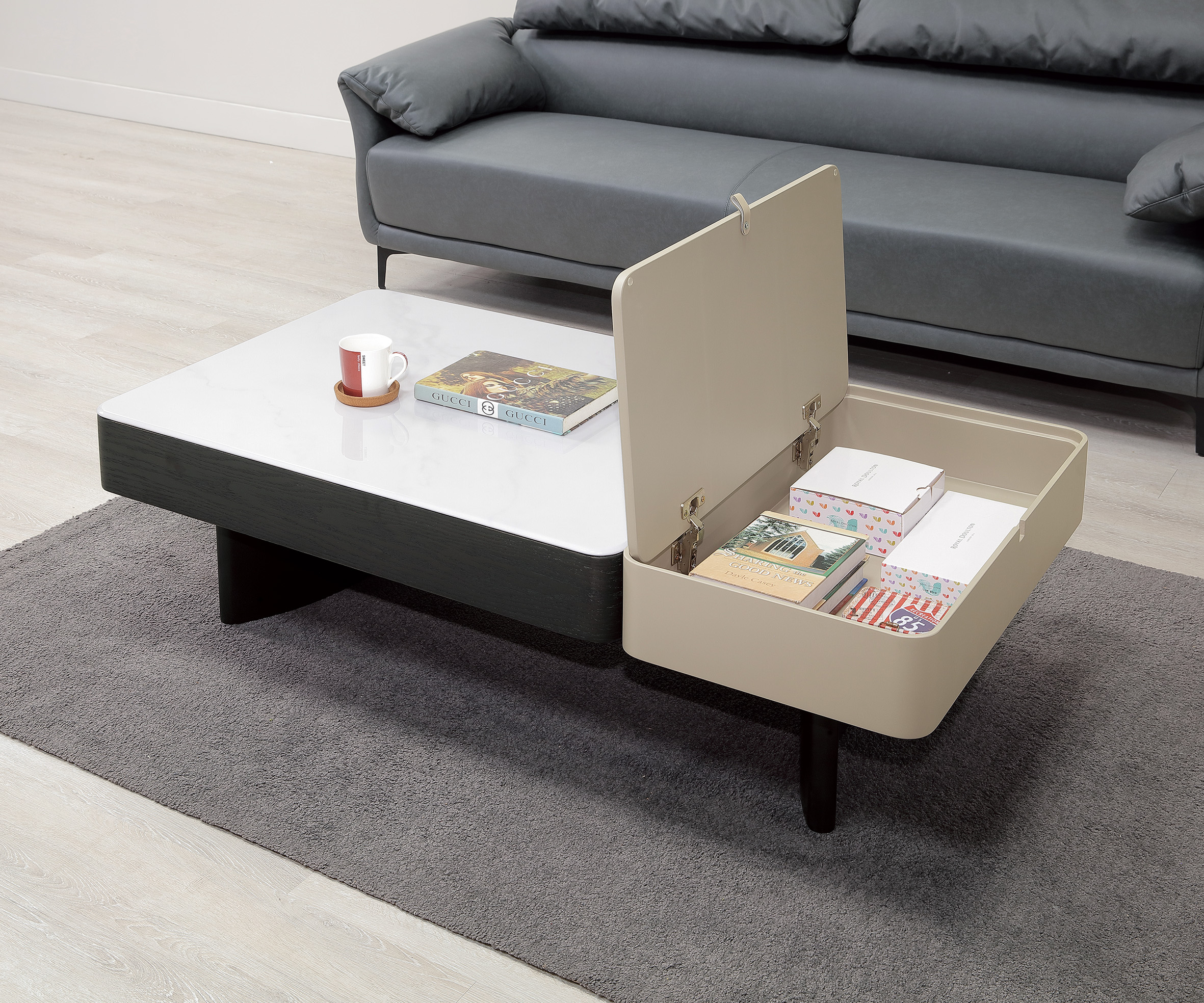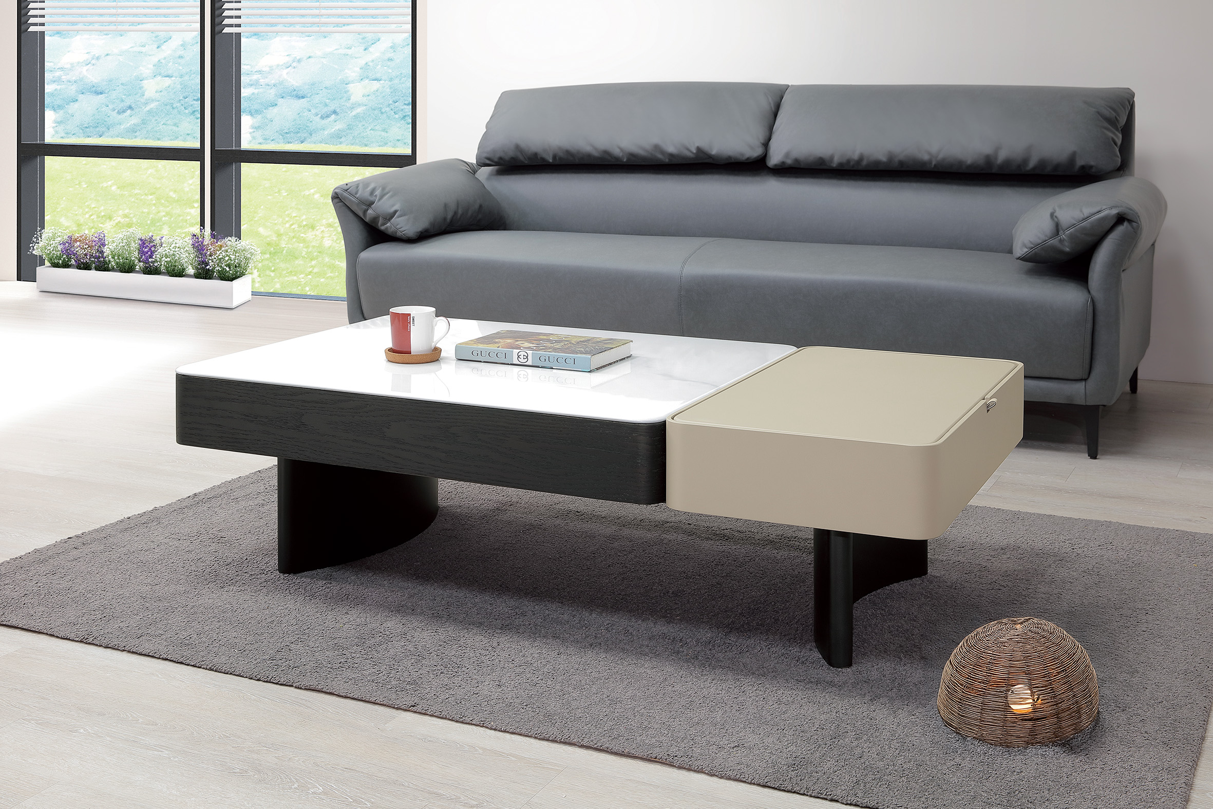 ◆桌面採天然石基底,經人工微晶石紋加工處理