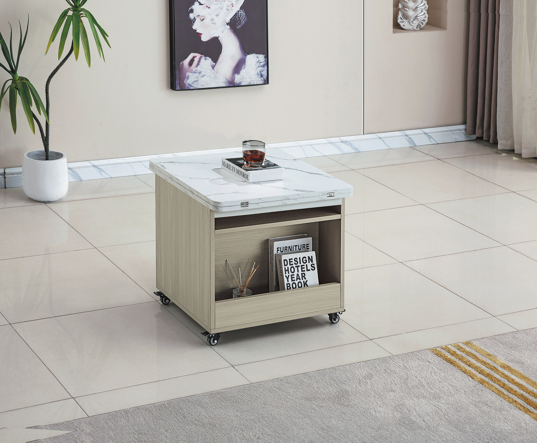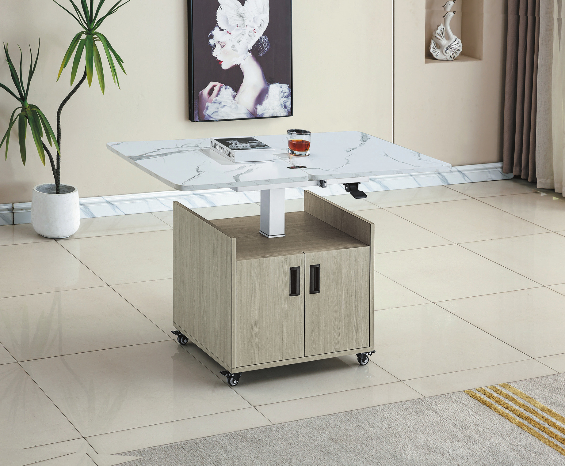 / ☆DE德一家具☆灰梧桐旋轉掀合石花昇降茶几 CY26-452-16602