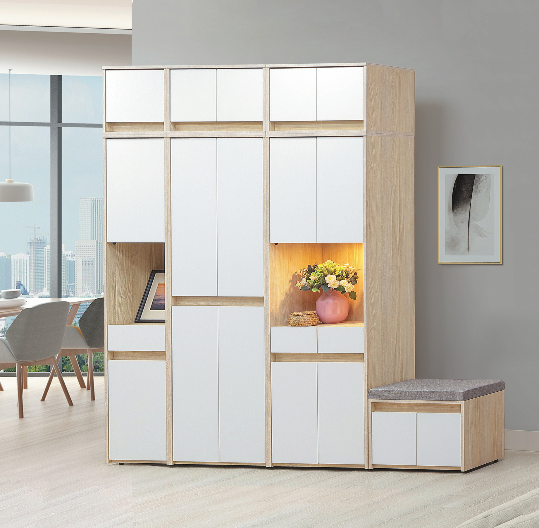 ◆2尺四門鞋櫃:寬60.5 x 深37 x 高194 cm,附活動隔板x8