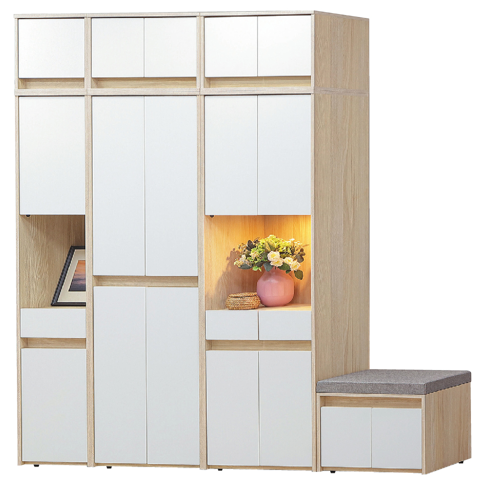 ◆2尺開放收納鞋櫃:寬60.5 x 深37 x 高194 cm,附暖光LED燈、活動隔板x4