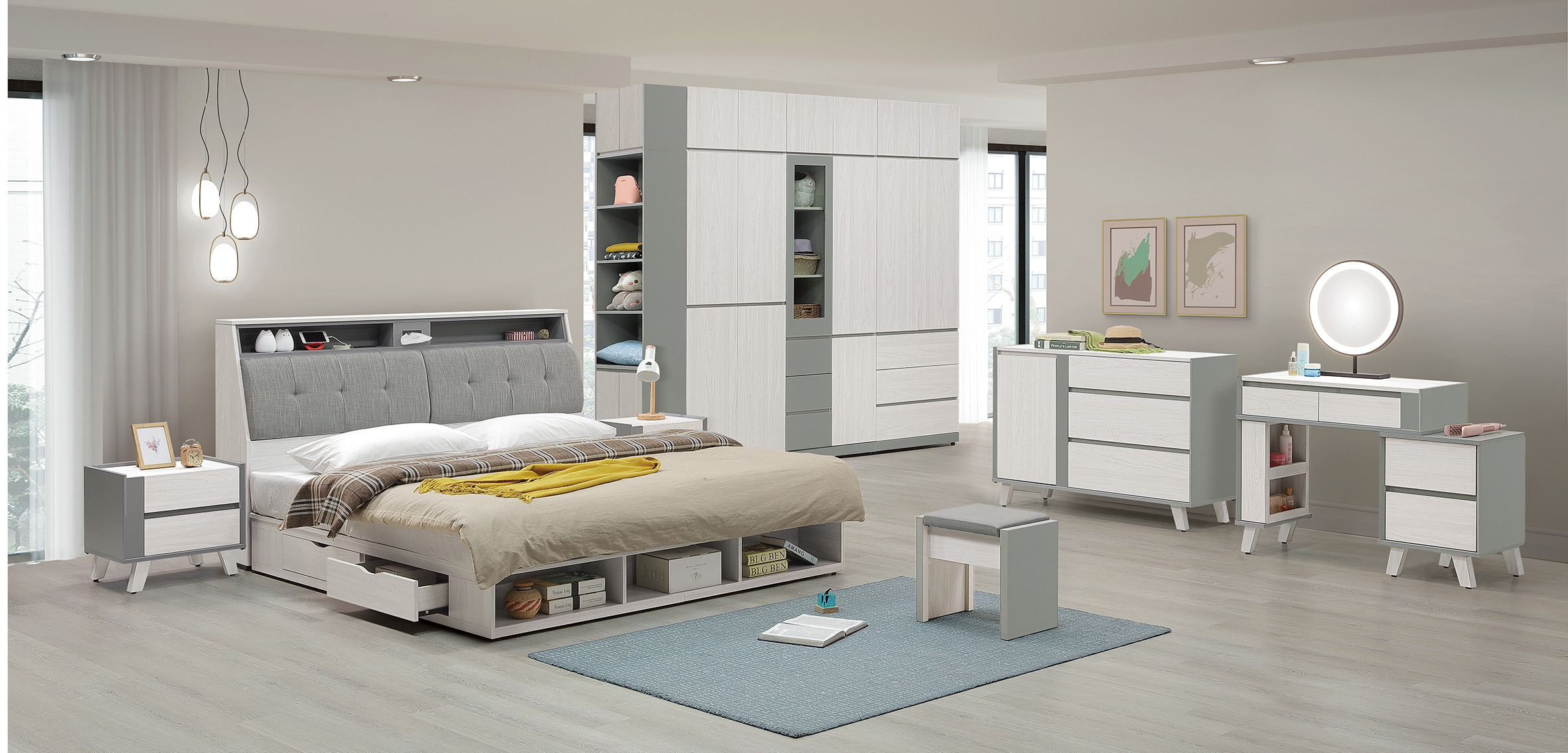 ◆床頭櫃、斗櫃鏡台桌面石紋美耐皿材質,具耐磨特性