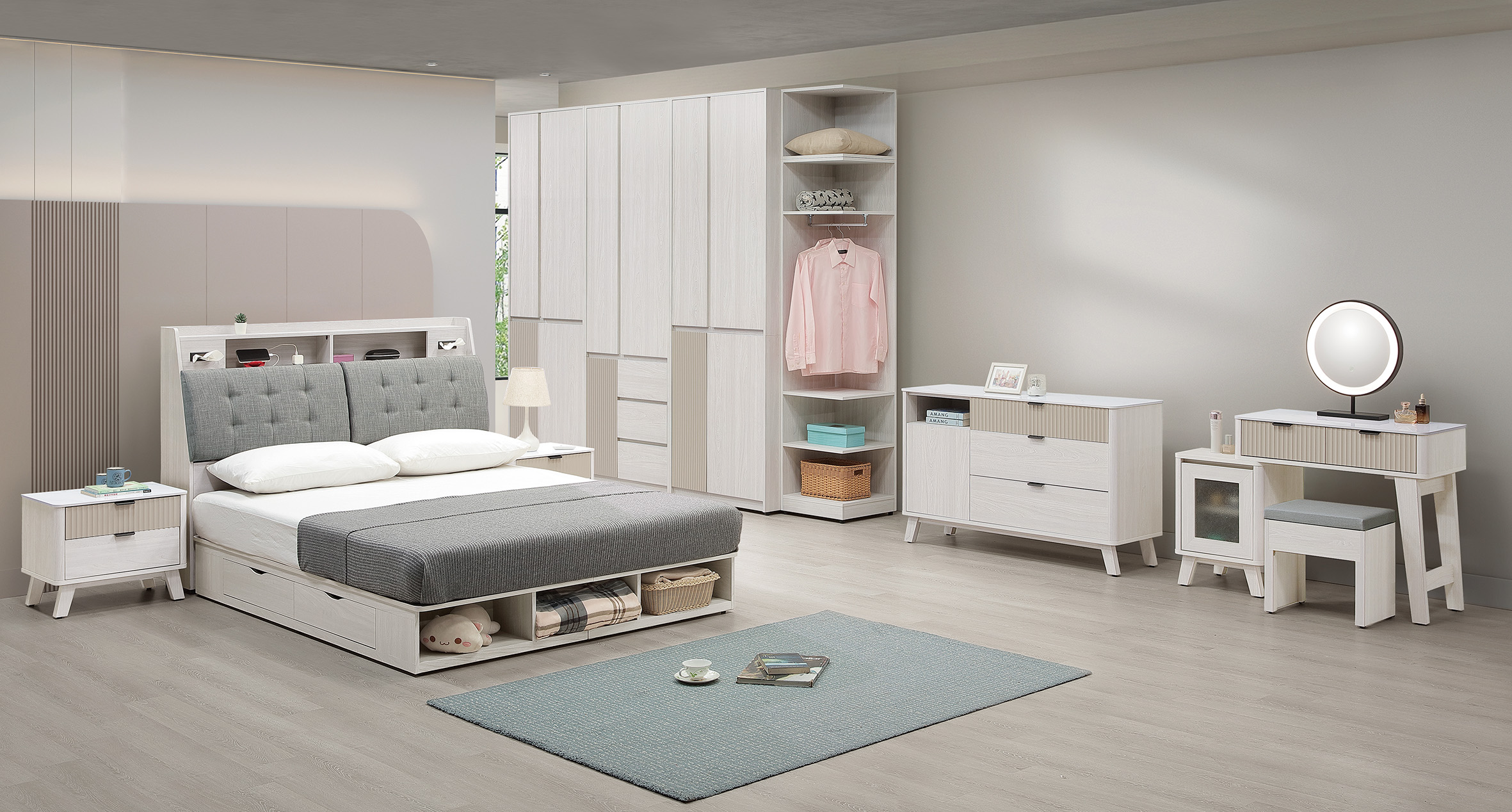 ◆櫃體與抽牆採用台灣製造A級環保木心板,採專利技術同調木紋鋼刷壓紋,猶如實木質感