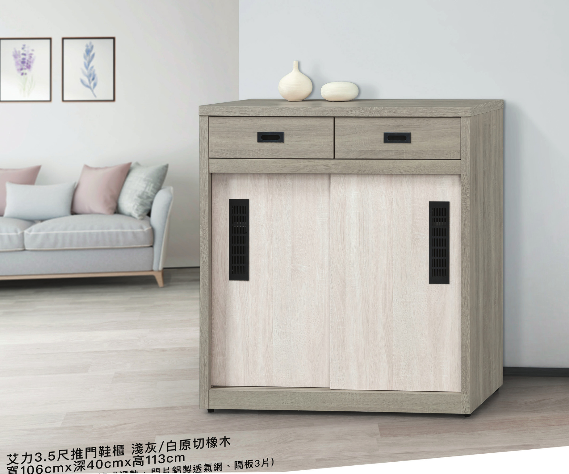 / ☆DE德一家具☆艾力淺灰白原切雙色3.5尺推門鞋櫃 CY26-711-173935