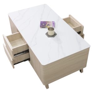 ◆桌面採12mm亮面雪山石岩板面,具耐磨耐熱特性