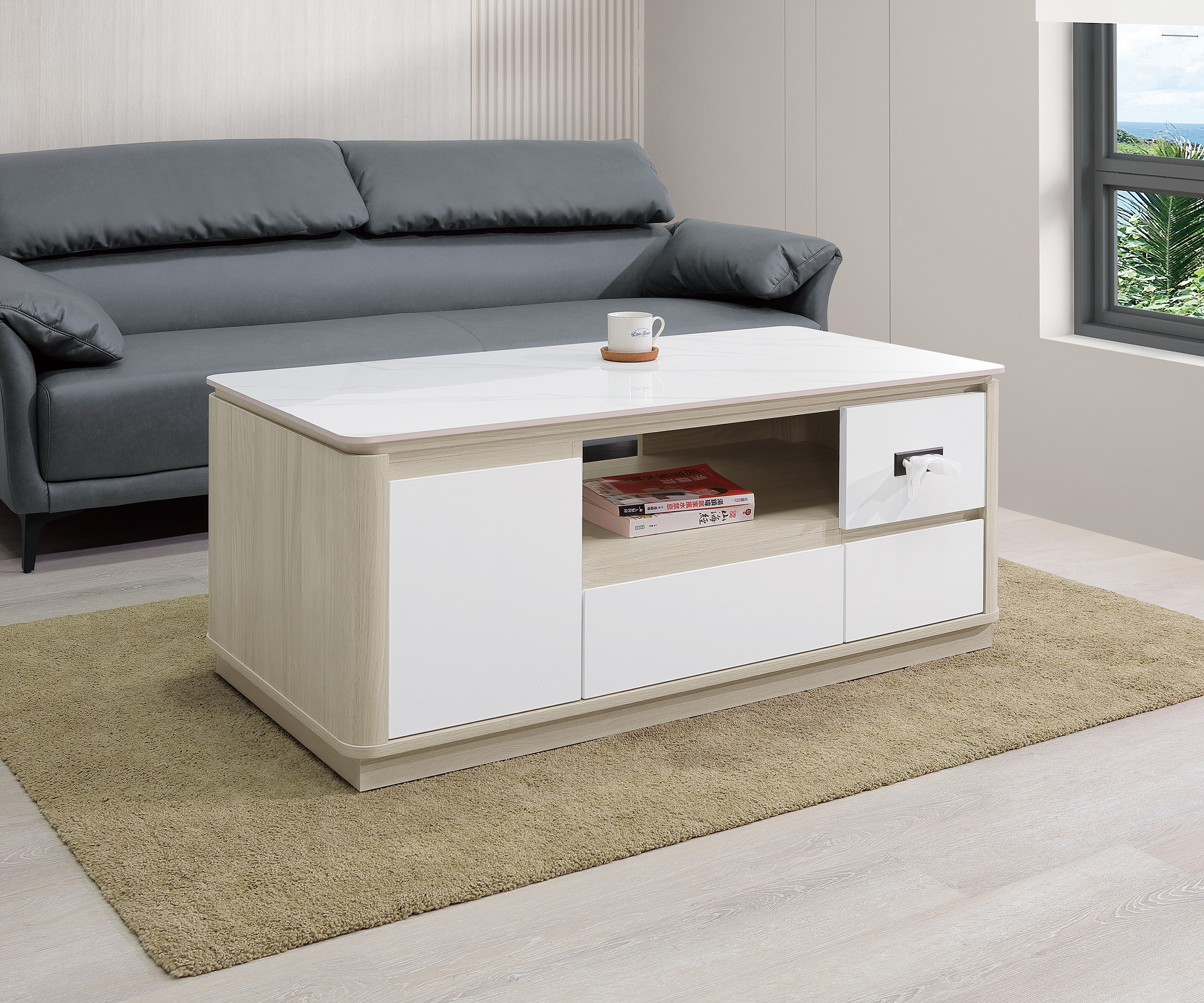 ◆雙面造型,正面二抽,雙面二門